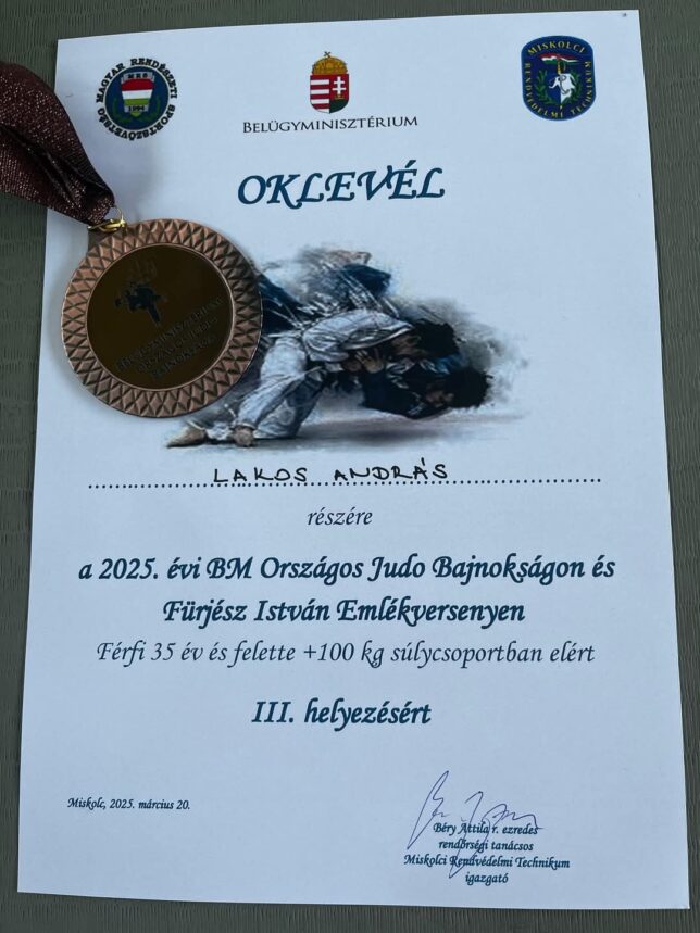 A mai napon a 30 év feletti örök ifjak küzdöttek meg a bajnoki pontokért. Lakos András a Nagyatádi Judo Club versenyzője az M3-as korosztály + 100 kg-os népes mezőnyű súlycsoportban az értékes pontszerző 7. helyezést érte el. Gratulálunk a versenyzőnknek.