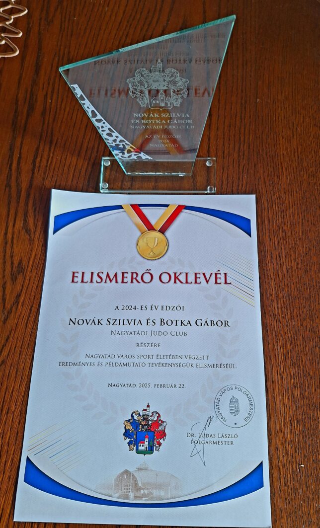 A 2024-es év legeredményesebb edzője megosztott díjazásban részesültek és emlékplakettet vehettek át a Nagyatádi Judo Club felkészítő edzői: Novák Szilvia és Botka Gábor.