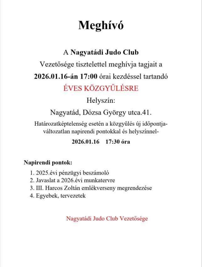 A Nagyatádi Judo Club 2022.évben hirdette meg a felnőtt Judo oktatását ahová rendszeresen csatlakoznak felnőtt korú, új vagy visszatérő tanítványok.